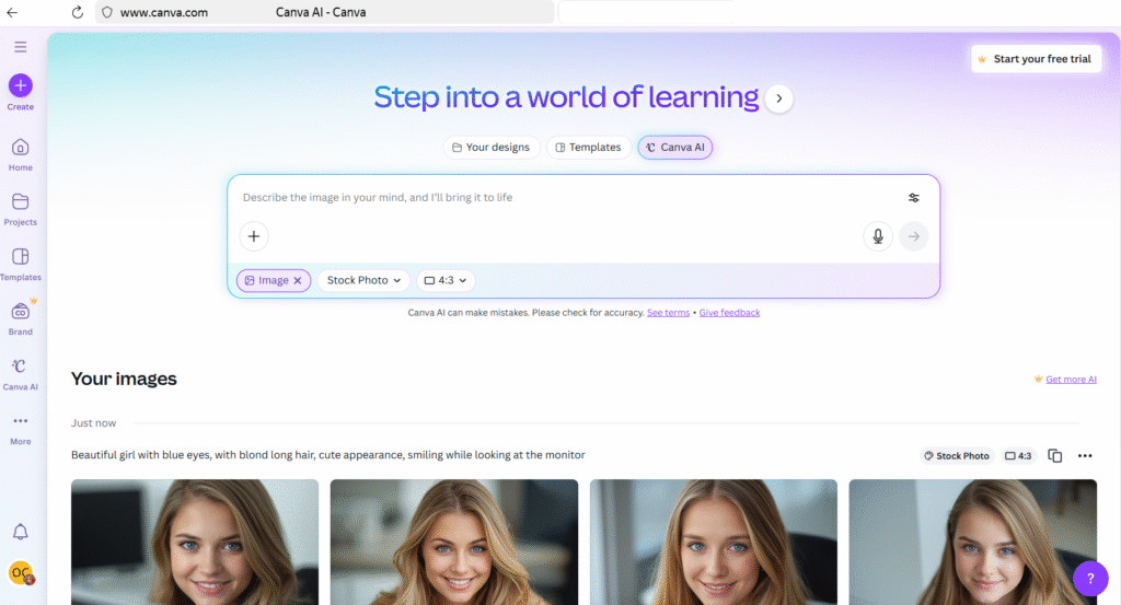 – the free version of Canva has a limit of up to 100 generations per day from one account (so you can buy Canva’s Pro version).